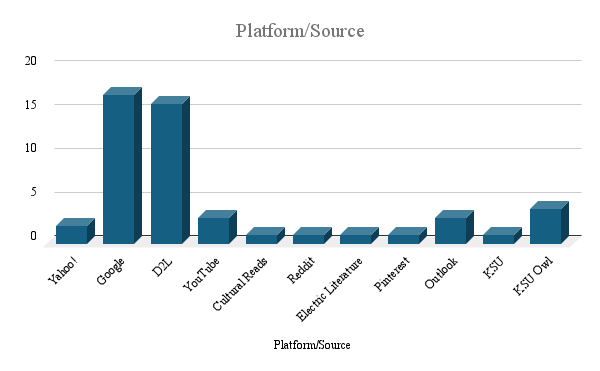 The platforms I use most often further highlight how central schoolwork is to my internet use. Google and D2L make up the majority of my platform activity, which makes sense because they are essential for searching for information and accessing class materials. Google often acts as my starting point whenever I need to research a topic, while D2L is where I check assignments, readings, and course announcements. Other sites related to reading and literature, such as Cultural Reads or Electric Literature, appear in smaller amounts, but they still show that I spend some time engaging with written content online. Overall, this suggests that when I use the internet for learning, I tend to focus on reading articles, essays, or research materials rather than primarily consuming video or visual content.